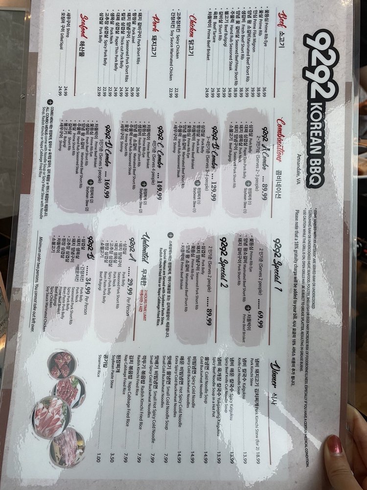 At 9292 Korean BBQ, located in Annandale, VA, diners embark on a culinary journey through the rich flavors of Korean cuisine. The menu features an impressive selection of meats, including Prime Rib Eye and Marinated Beef Short Ribs, each meticulously sourced for quality and flavor. Savory options like Spicy Chicken and a variety of pork dishes like Pork Belly cater to diverse palates.